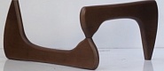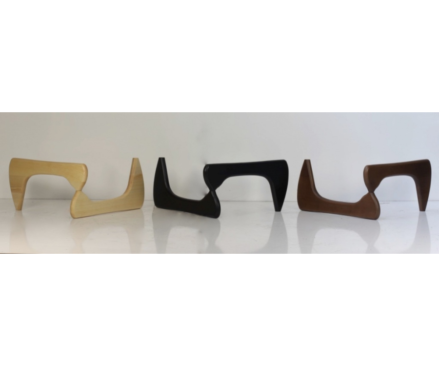 Die Form dieses Couchtisches wirkt leicht und einfach. Er wirkt fast so, als würde er schweben. Die transparente Konstruktion ist trotzdem sehr stabil und hält eine hohe Belastung aus. Zwei Holzteile bilden die Beine. Sie liegen symmetrisch und entgegengesetzt. Diese Holzelemente sind sauber lackiert und verarbeitet.